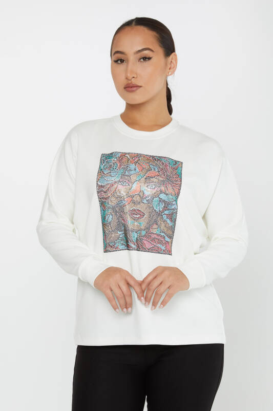 Свитшот женский с рисунком цвета экрю и цветными камнями - 2247 | КАЗИ (набор из 3 шт. L-XL-2XL)