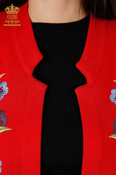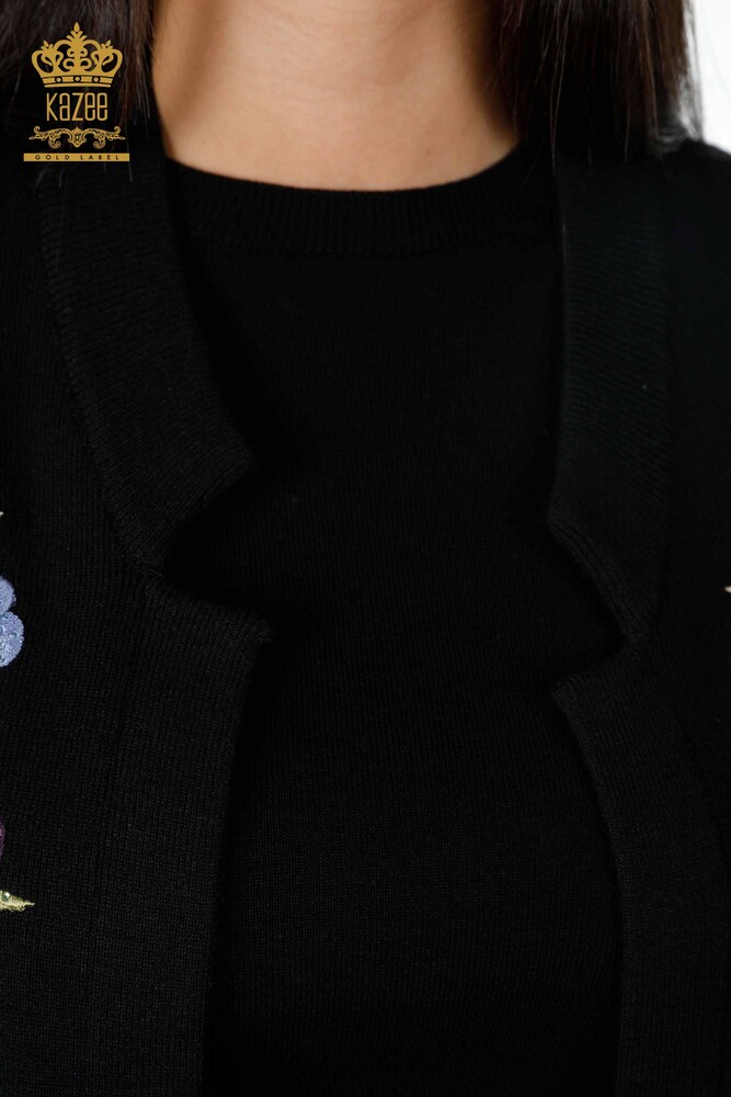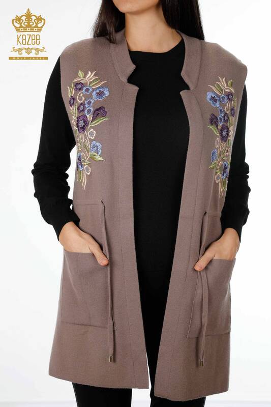 Maglieria da donna all'ingrosso Gilet con motivi floreali ricamati in pietra - 16835 | KAZEE