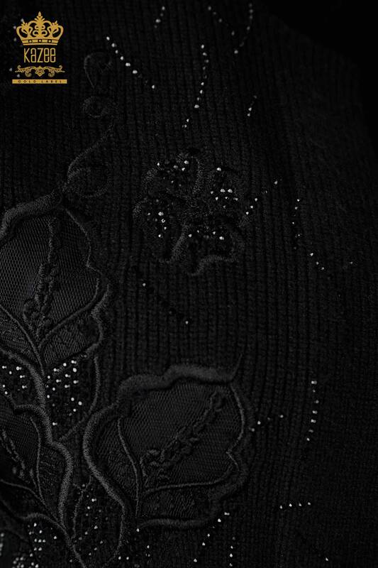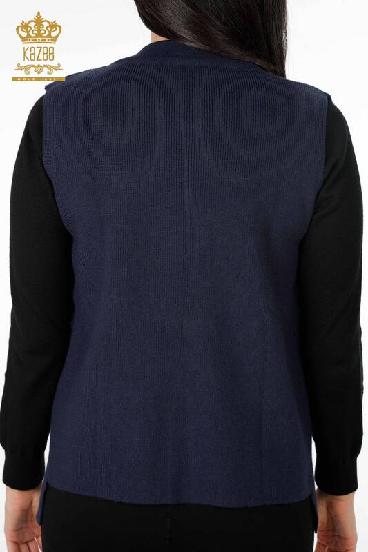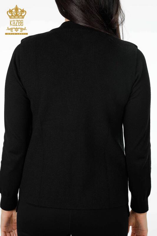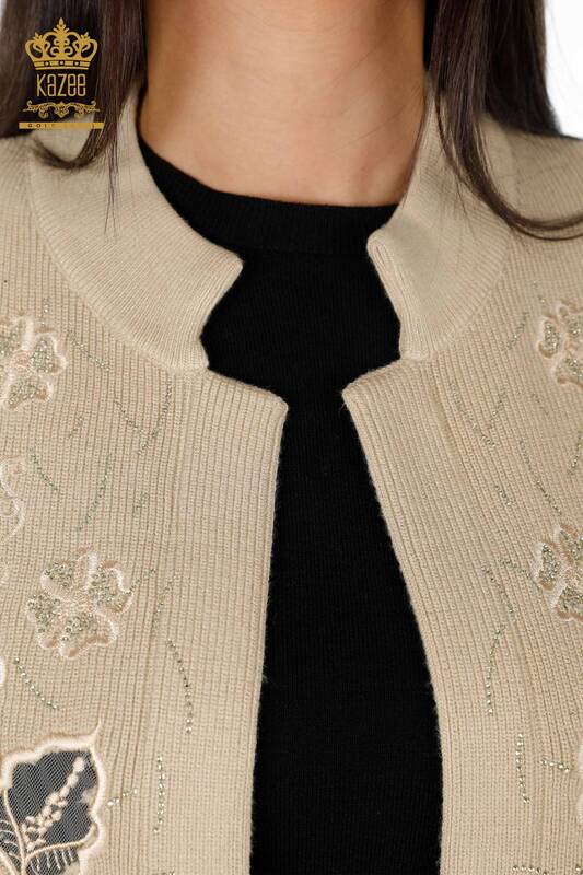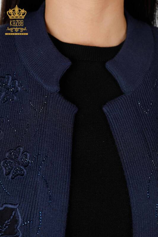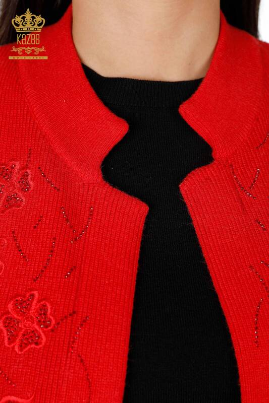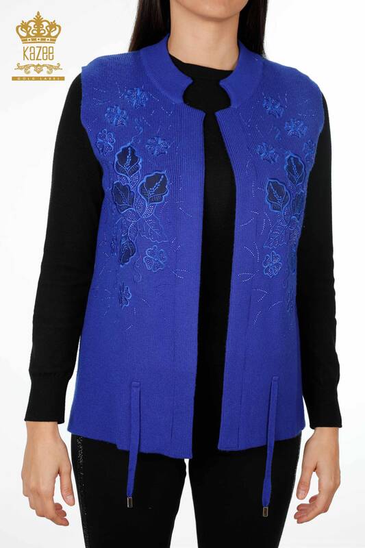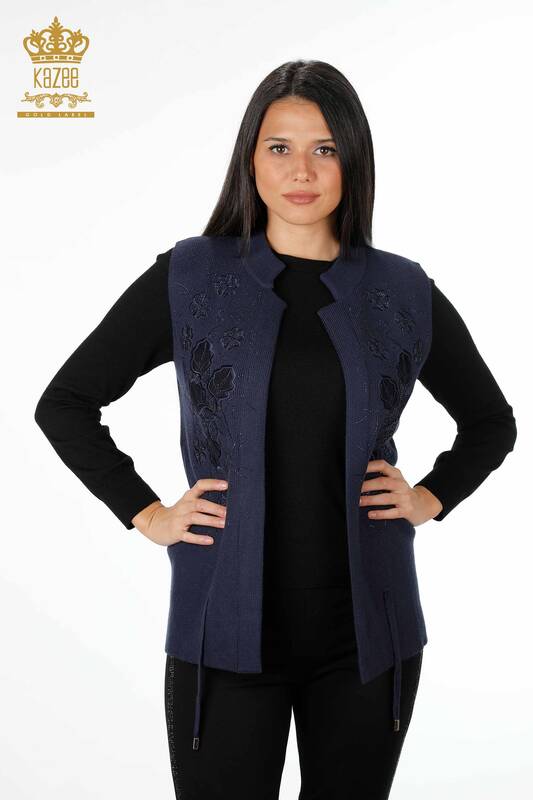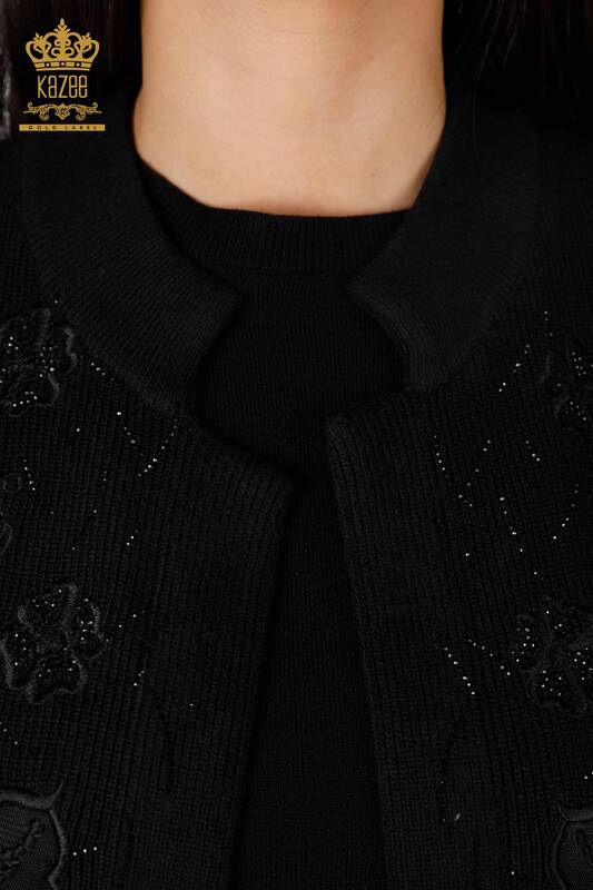 All'Ingrosso Maglieria Donna Gilet - Ricamo Pietre Ricamato - Corto - Modellato Floreale - 16839 | KAZEE
