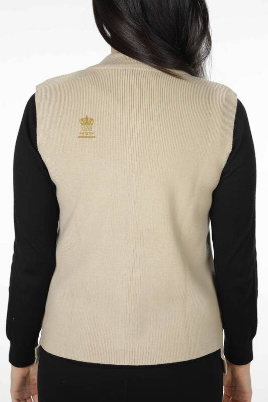 Maglieria da donna all'ingrosso Gilet Stone ricamato motivo floreale corto - 16839 | KAZEE