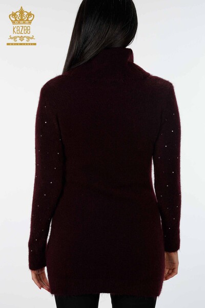Túnica de angora detallada con dos bolsillos y bordado de piedra para mujer al por mayor