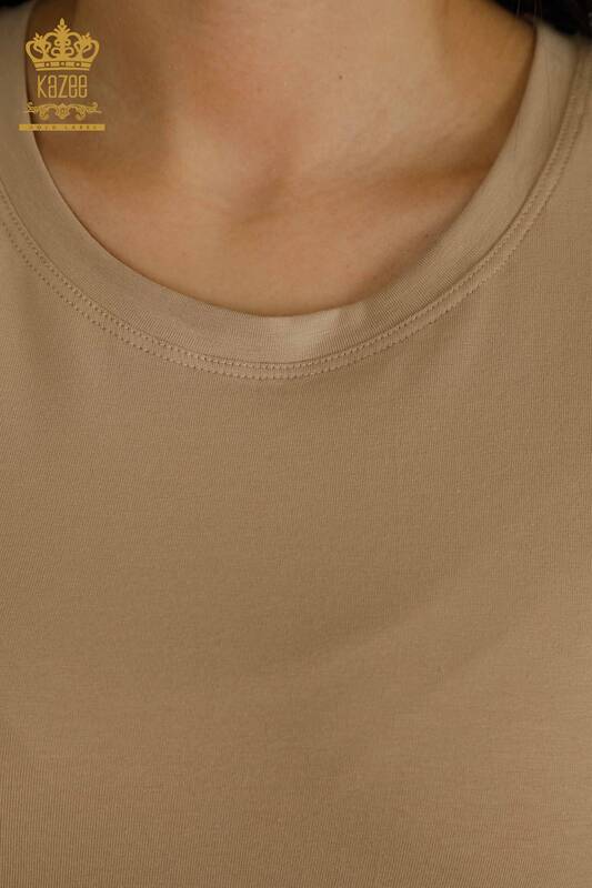 Chemisier Femme Basique Manches Courtes Col Rond Beige - 79562 | KAZÉE