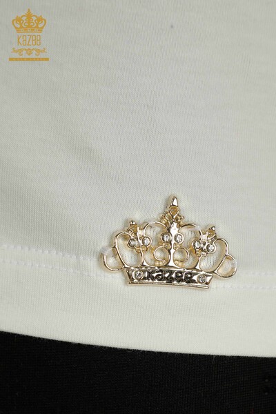 بلوزة نسائية بالجملة بشعار أساسي بأكمام قصيرة بيج فاتح - 79190 | كازي