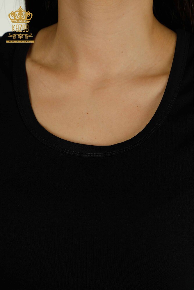 Bluză de damă cu ridicata American Model Basic Logo Bleumarin - 79177 | KAZEE