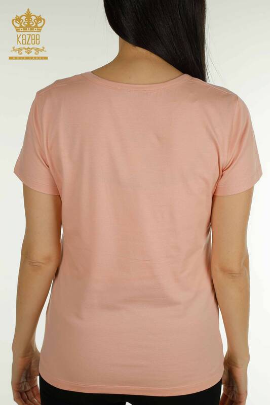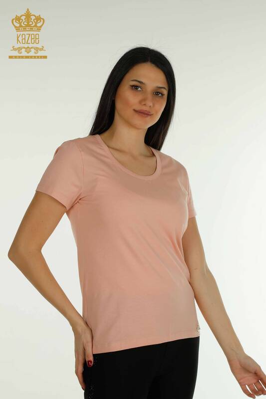 بلوزة نسائية للبيع بالجملة موديل أمريكي بشعار أساسي بودرة - 79177 | كازي