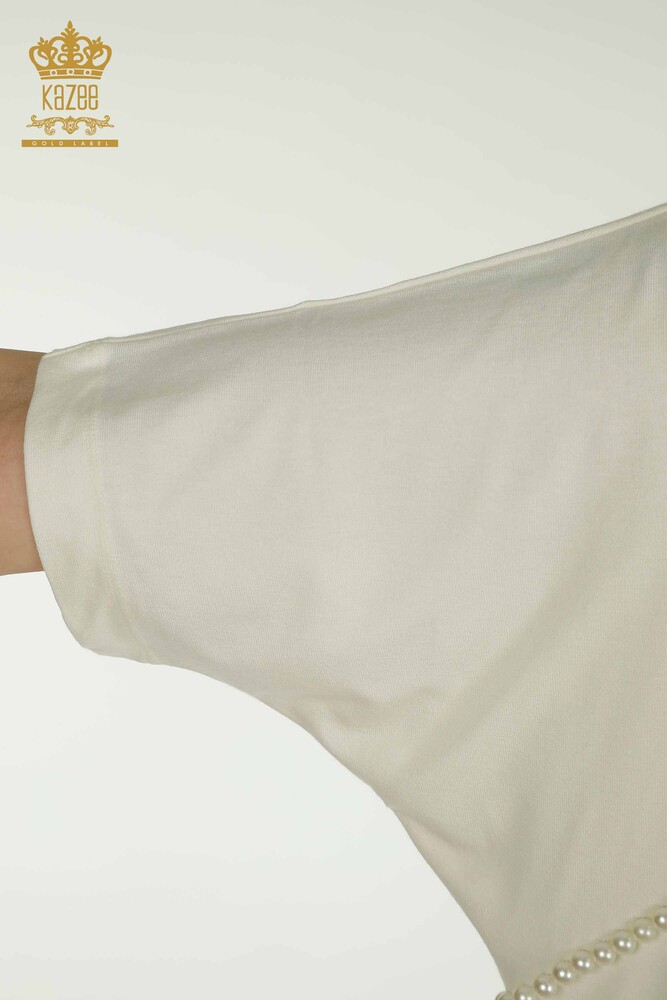 Оптовая Женская Блузка Вышивка Бисером С Коротким Рукавом Экрю - 79196 | КАЗЕЕ