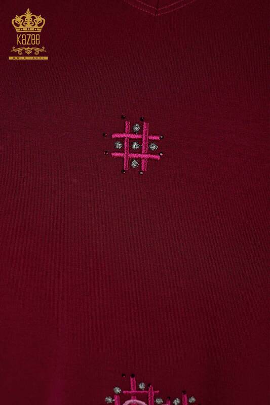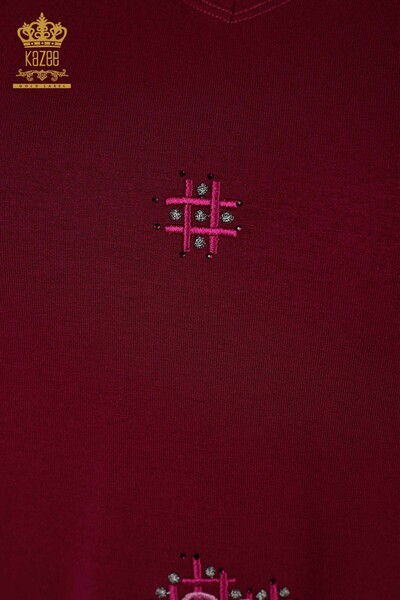 Bluză cu ridicata pentru femei cu model de flori, liliac brodat cu piatră - 78879 | KAZEE