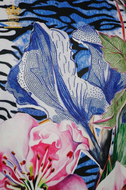Camicetta da donna all'ingrosso manica corta ricamata in pietra con stampa digitale - 79228 | KAZEE