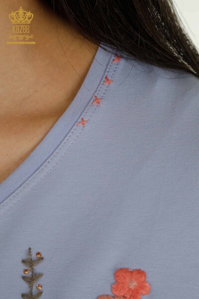 Hurtownia Damska Bluzka Kwiatowa Haftowana Kamień Haftowana Dekolt V Liliowa - 79466 | KAZEE
