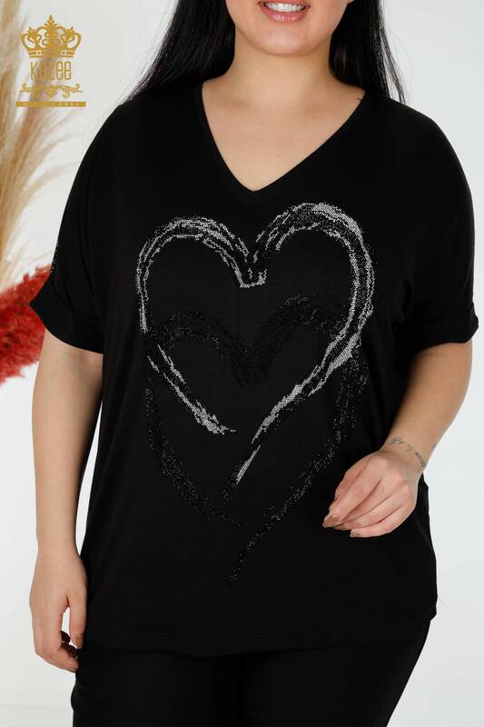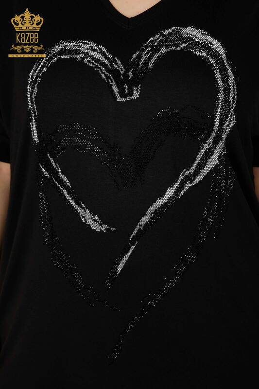 عمده فروشی بلوز زنانه سنگ کریستال دوزی قلب طرح دار مشکی-77711 / کازی