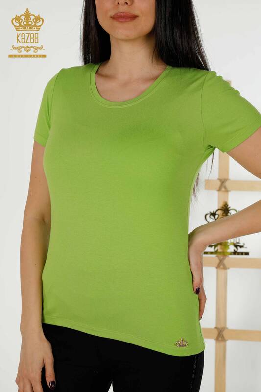 Venta al por mayor Blusa de Mujer Manga Corta Logotipo Básico Verde Pistacho - 79287 | kazee