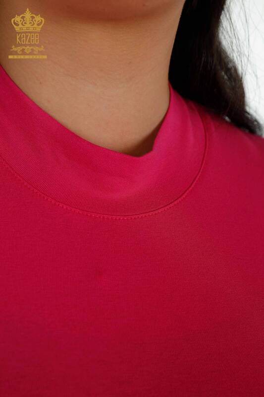 Toptan Kadın Bluz Basic Yarım Dik Yaka Fuşya - 79264 | KAZEE