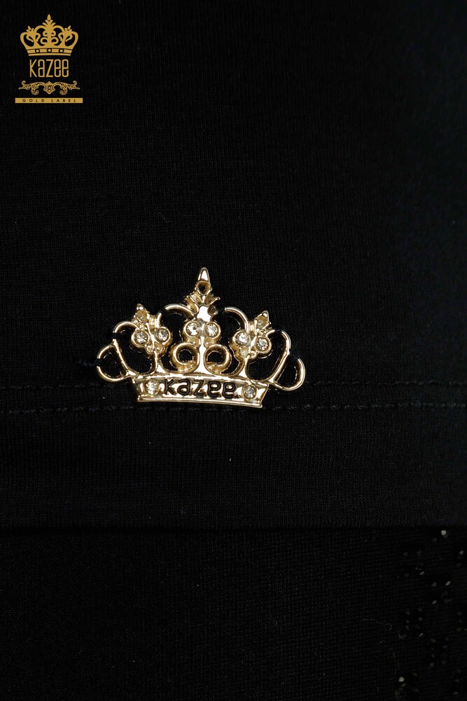 Женская блузка оптом с коротким рукавом с логотипом темно-синего цвета - 79178 | КАЗЕЕ