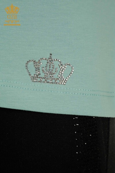 Venta al por mayor Blusa de mujer Manga Corta Piedra Bordada Escote en V Menta - 79561 | KAZEE