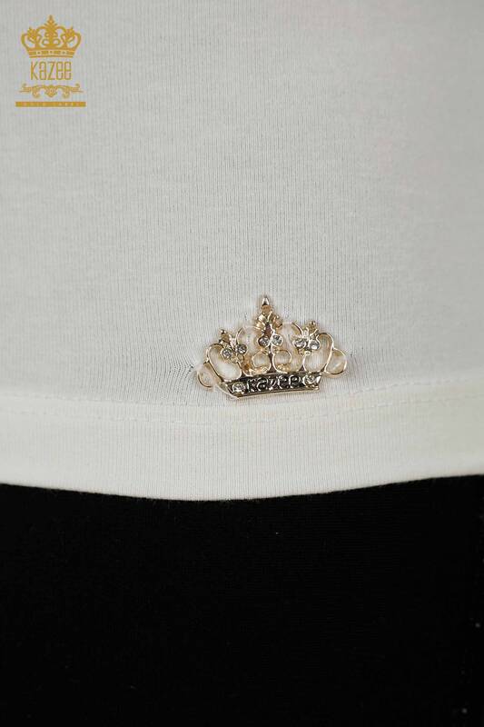 Toptan Kadın Bluz Kolsuz Basic Logolu Ekru - 79262 | KAZEE