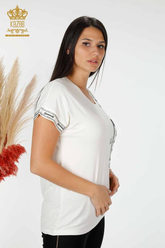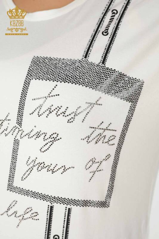 Wholesale Women's Blouse American Model Crystal Stone Embroidered Ecru - 78919 | KAZEE