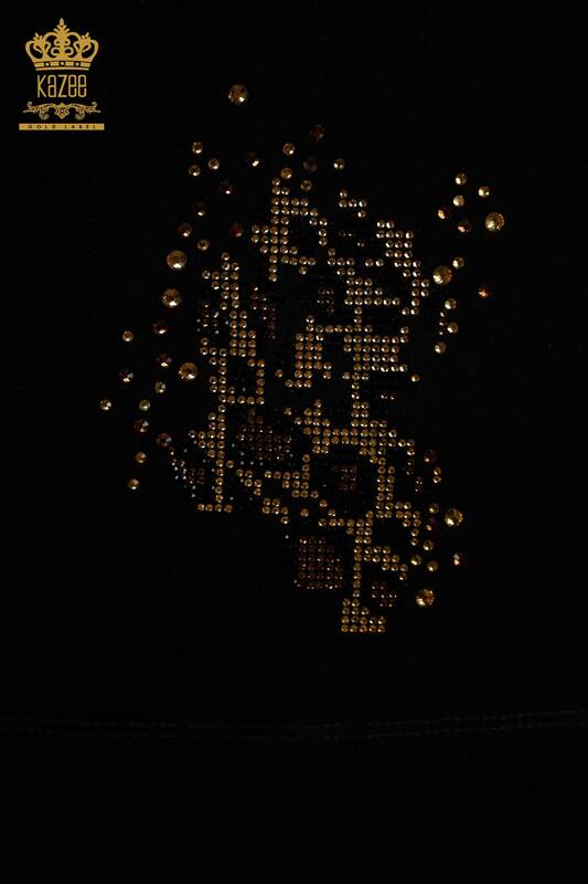 Toptan Kadın Bluz Leopar Taş İşlemeli Siyah - 79383 | KAZEE