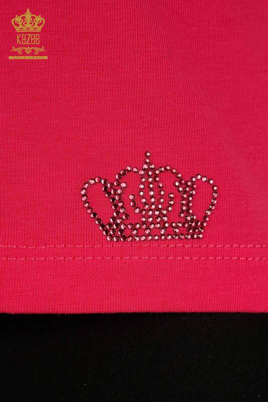 Hurtownia bluzek damskich z haftowanym kamieniem i krótkim rękawem Logo Fuksja - 79560 | KAZEE