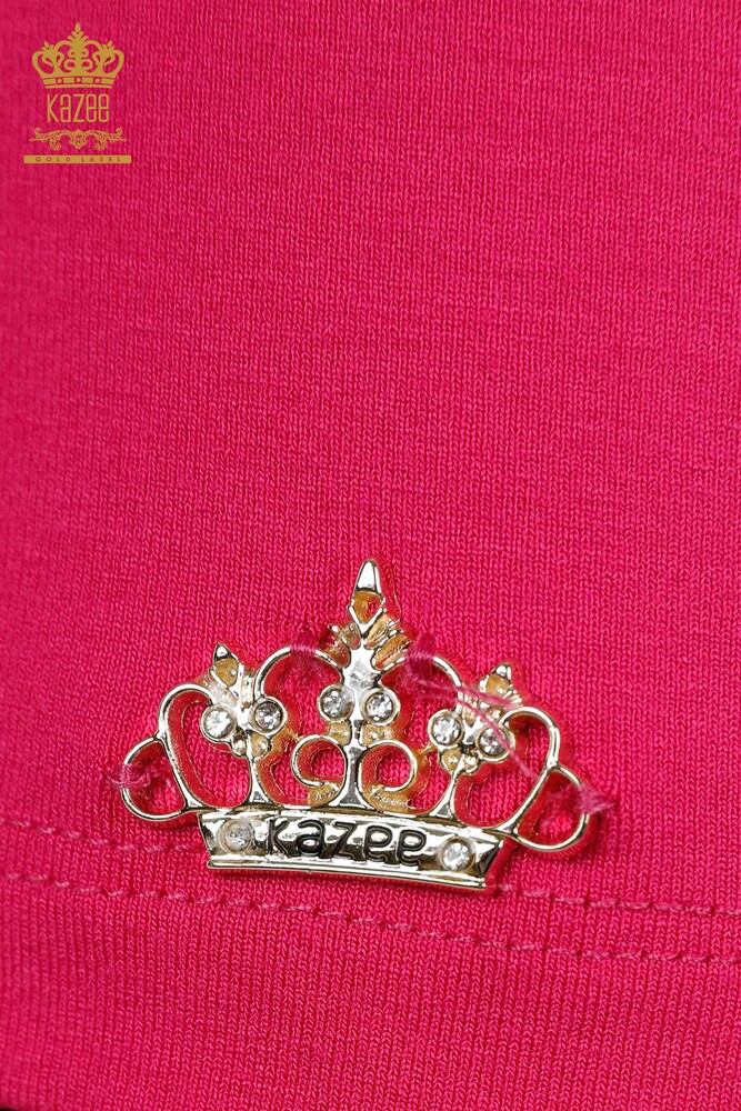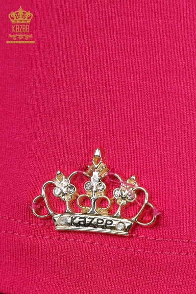 Camicetta da donna all'ingrosso con logo di base dettagliato manica corta fucsia - 79220 | KAZEE