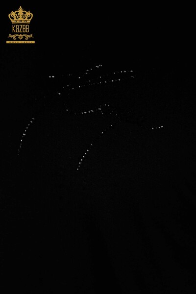 Hurtownia damska bluzka na ramię szczegółowa haftowana kamieniem czarna - 79108 | KAZEE
