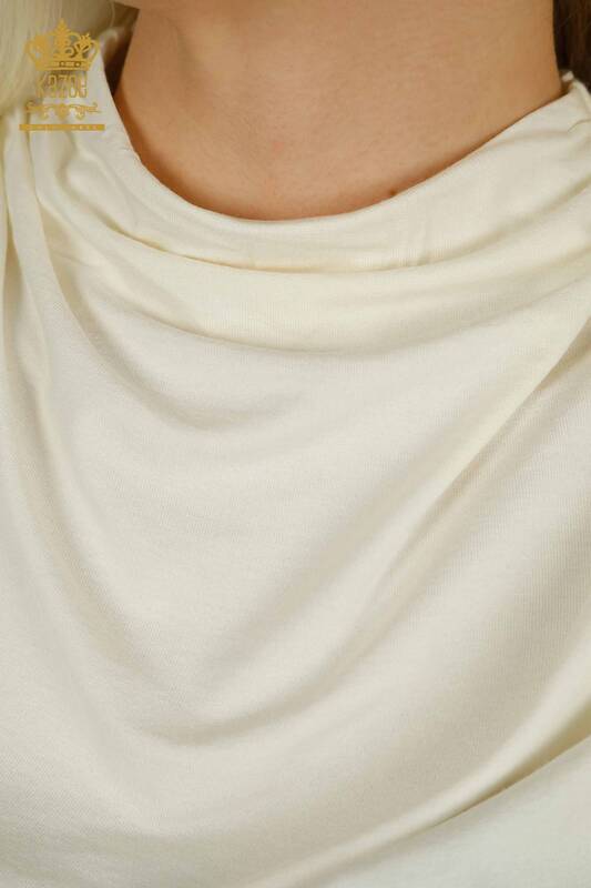 Hurtownia bluzek damskich z zerowym rękawem Logo Ecru - 79312 | KAZEE