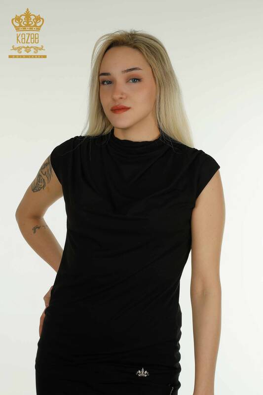 оптом Женская блузка с нулевым рукавом и логотипом черного цвета - 79312 | КАЗЕЕ