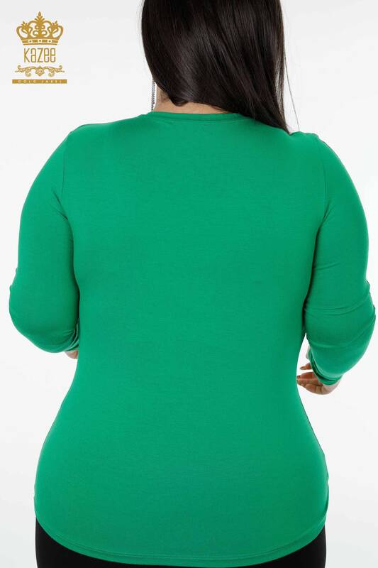 Toptan Kadın Bluz Taş İşlemeli Bisiklet Yaka Yeşil - 79000 | KAZEE