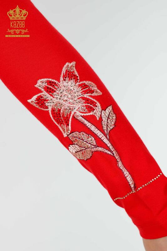 Grossiste Chemisier Femme Motif Floral Pierre Brodée Rouge - 79011 | KAZEE