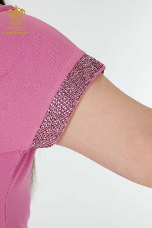 Hurtownia bluzek damskich z haftowanym kamieniem liliowym- 78918 | KAZEE