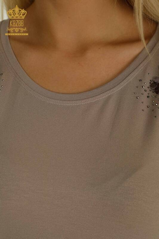 Оптовая Женская Блузка Цветочным Узором Вышитая Камнем Норка - 79097 | КАЗЕЕ