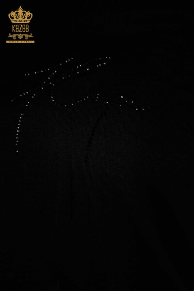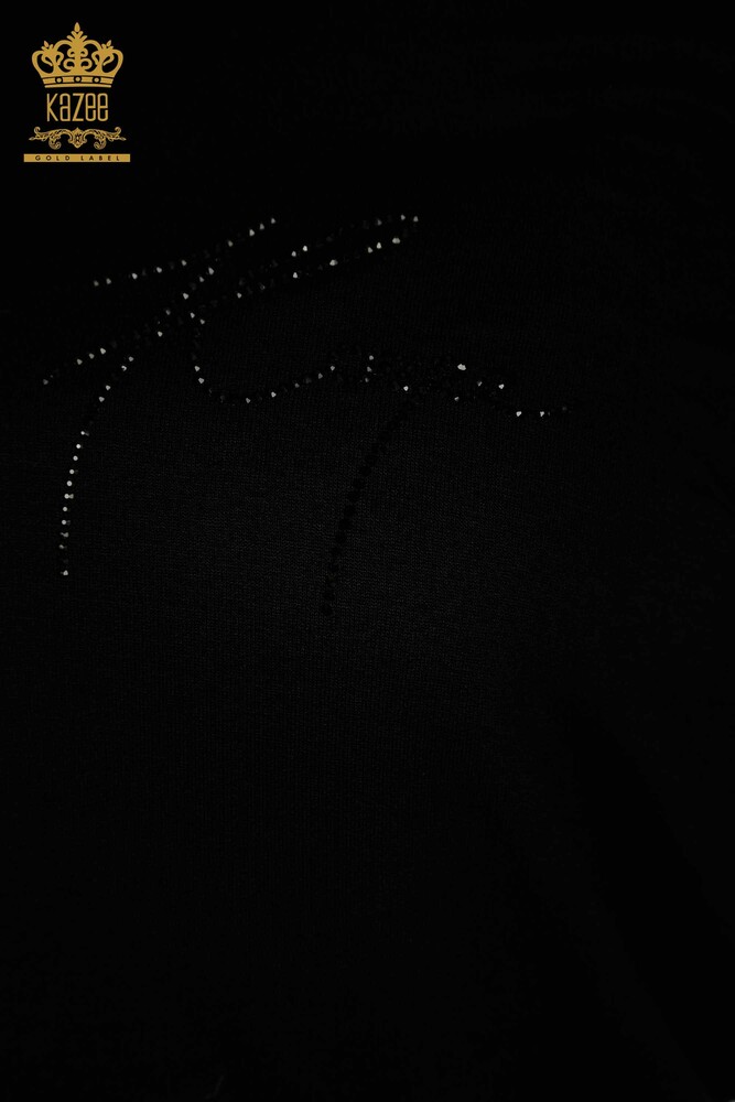 Hurtownia bluzek damskich z dekoltem w kształcie litery V, haftowana z kamieniami w kolorze czarnym - 79309 | KAZEE