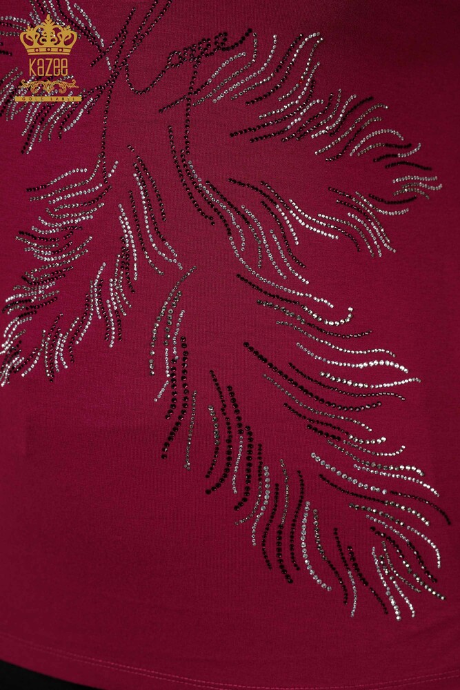 оптом Женская блузка с узором в виде листьев, вышитая камнем, сиреневая - 77970 | КАЗЕЕ