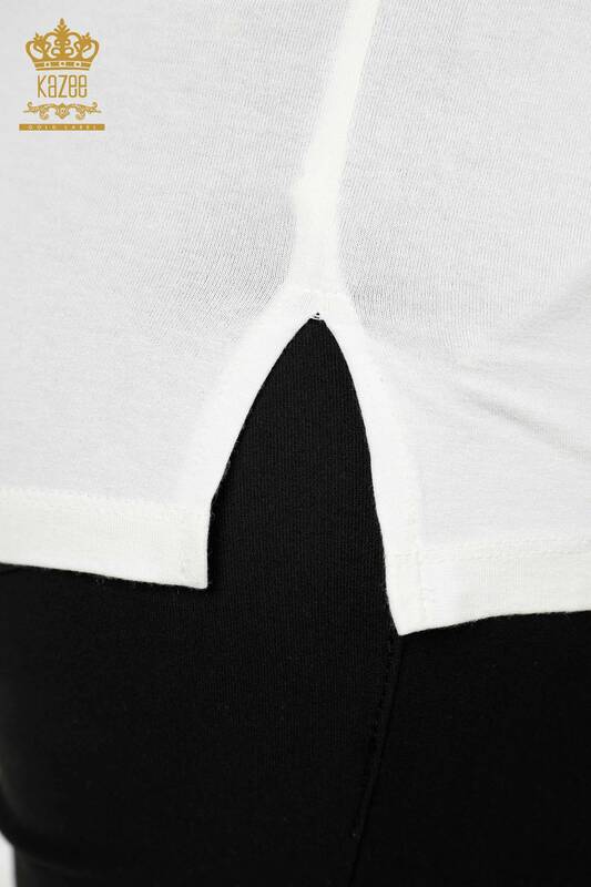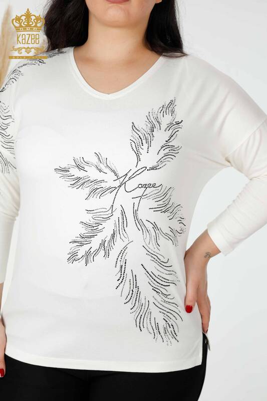 Toptan Kadın Bluz Yaprak Desenli Taş İşlemeli Ekru - 77970 | KAZEE