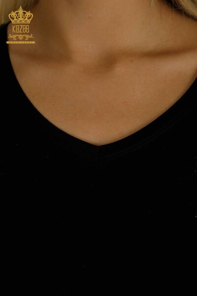 Chemisier Femme En Gros Feuille À Motifs Pierre Brodée Noir - 79090 | KAZÉE