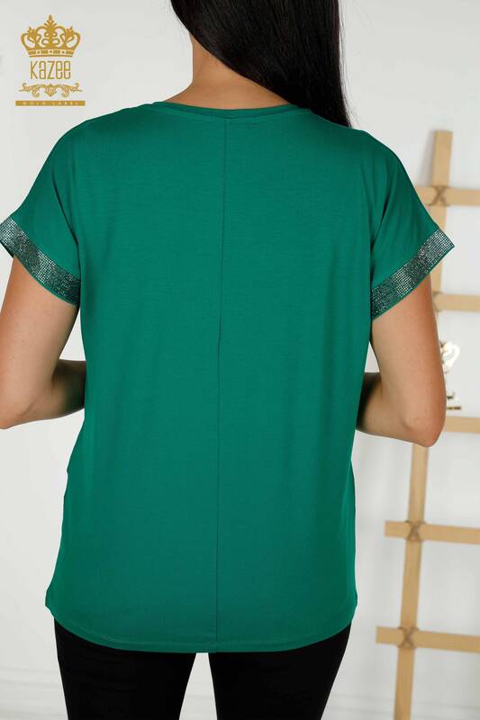Toptan Kadın Bluz Yaprak Desenli Taş İşlemeli Yeşil - 78878 | KAZEE