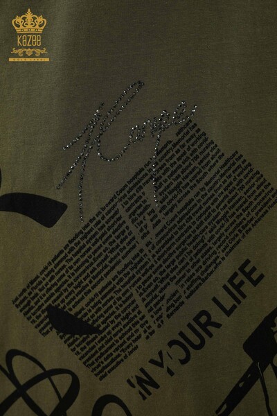 Commercio all'ingrosso Abito da donna in pelle Tasca dettagliata Pietra ricamata Khaki - 20366 | KAZEE