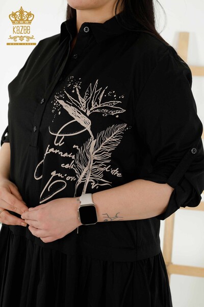 Abito da donna all'ingrosso a motivi geometrici con bottoni ricamati in pietra nera - 20324 | KAZEE