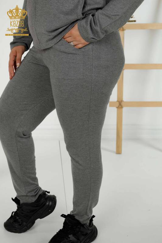 Toptan Kadın Eşofman Takımı Çiçek Desenli Cepli Fermuarlı Gri - 16661 | KAZEE