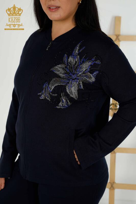Hurtownia dresów damskich w kwiatowe wzorzyste kieszonki zapinane na zamek granatowe - 16661 | KAZEE
