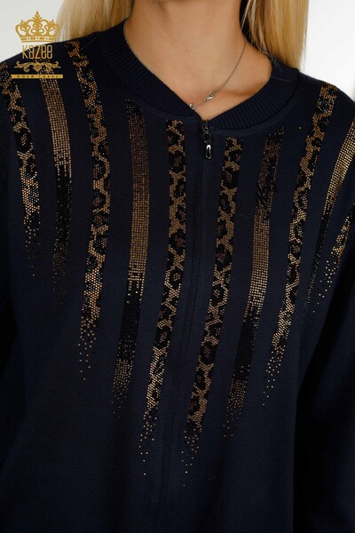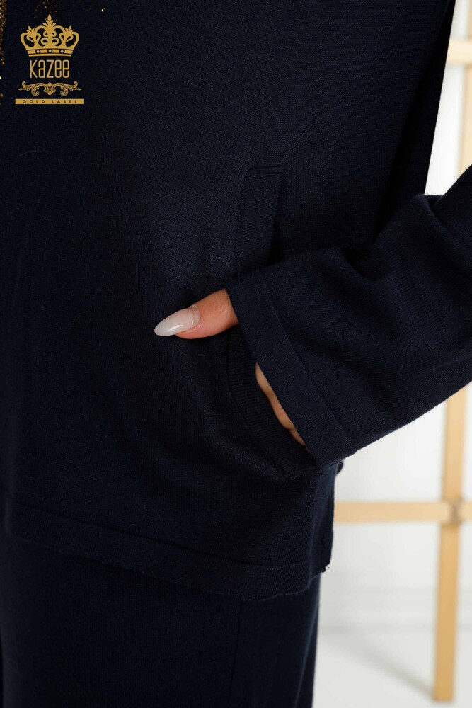 Großhandel Damen-Trainingsanzug-Set mit Reißverschlusstaschen, Steinstickerei, Marineblau – 16280 | KAZEE
