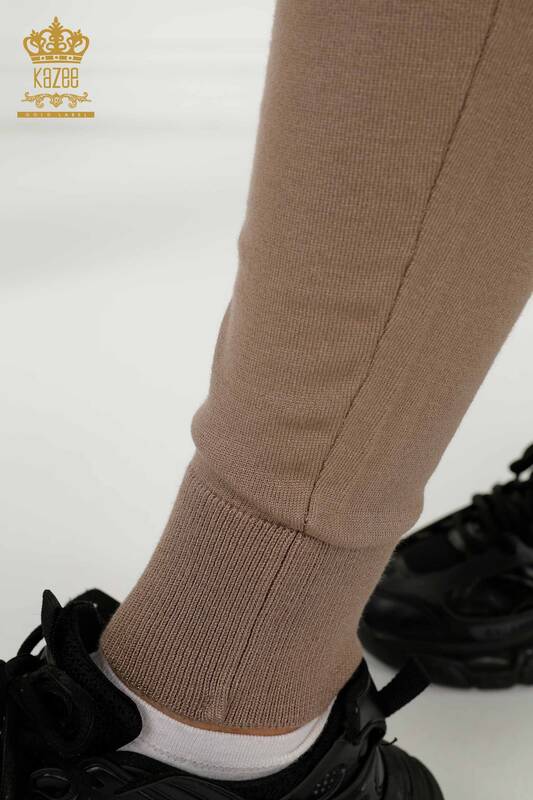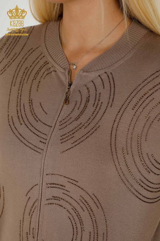 Toptan Kadın Eşofman Takımı Fermuarlı Taş İşlemeli Cepli Vizon - 16276 | KAZEE