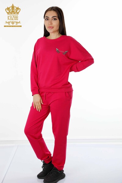 بدلة رياضية نسائية بالجملة مزينة بنقشة النمر مزينة بجيب أزرق - 17459 | كازي