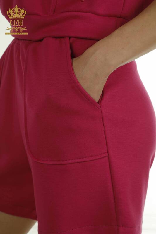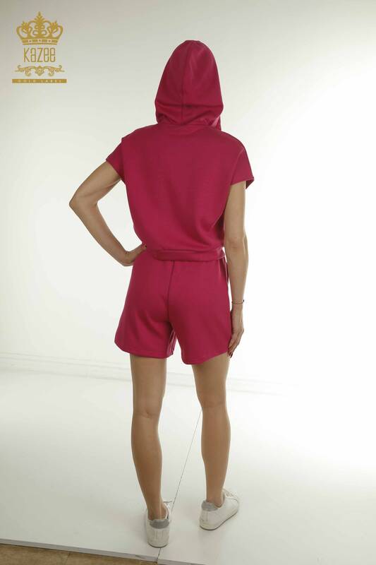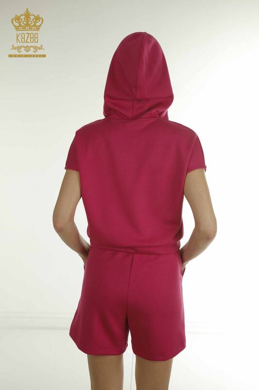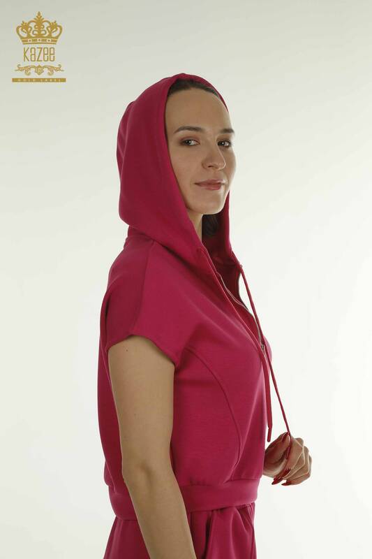 Toptan Kadın Eşofman Takımı Kısa Kol Kapüşonlu Fuşya - 17704 | KAZEE