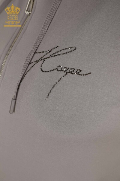 Tuta da donna all'ingrosso Set Tasca ricamata in pietra con cappuccio Grigio - 20392 | KAZEE