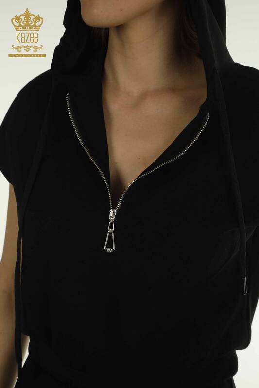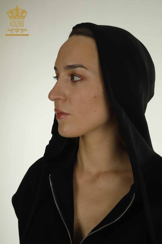Toptan Kadın Eşofman Takımı Kapüşonlu Siyah - 17704 | KAZEE