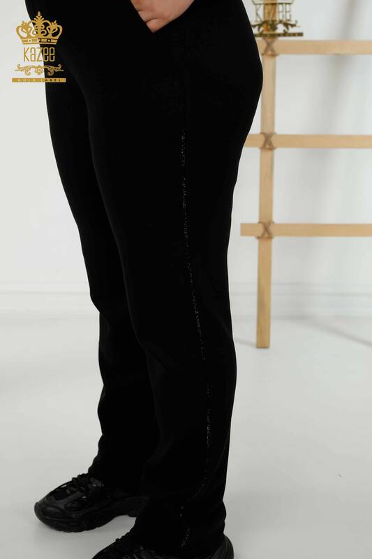 Set de trening pentru femei cu glugă, cu buzunar brodat cu piatră, negru - 20392 | KAZEE