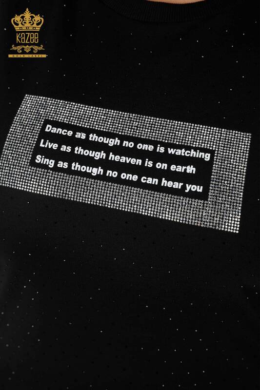 Set tuta da donna all'ingrosso manica corta pietra ricamata scritta nera - 17389 | KAZEE