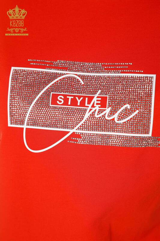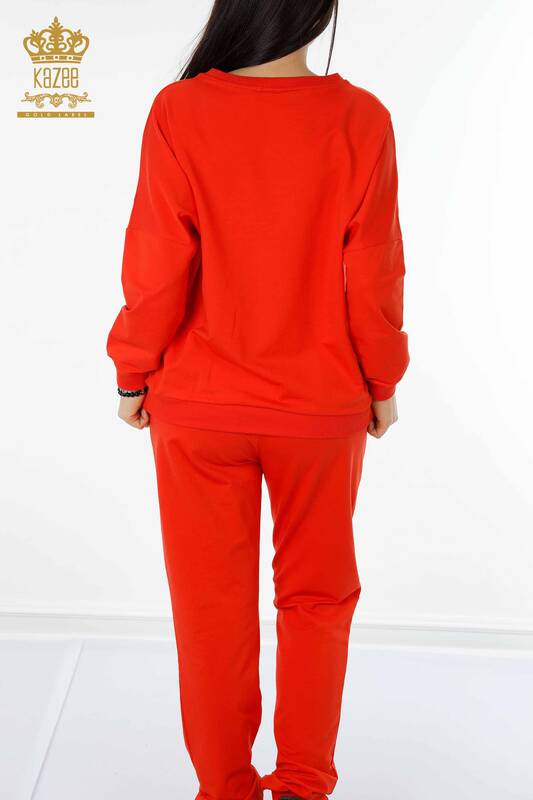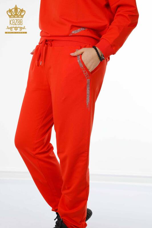 Toptan Kadın Eşofman Takımı Kristal Taş İşlemeli Oranj - 17461 | KAZEE