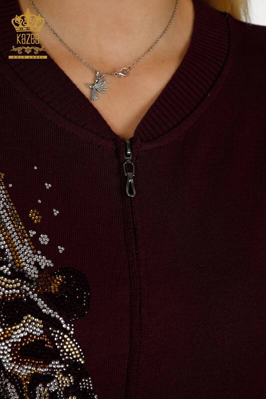 Оптовая продажа женского спортивного костюма с леопардовым узором, на молнии, с вышивкой, сливовый - 16660 | КАЗИ