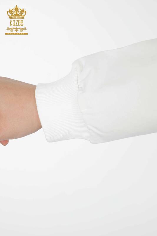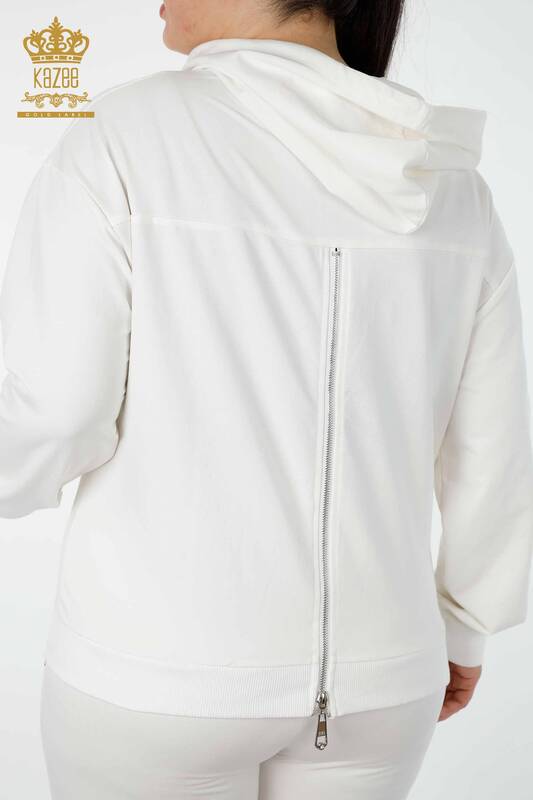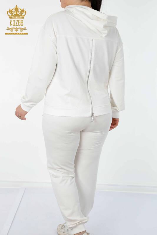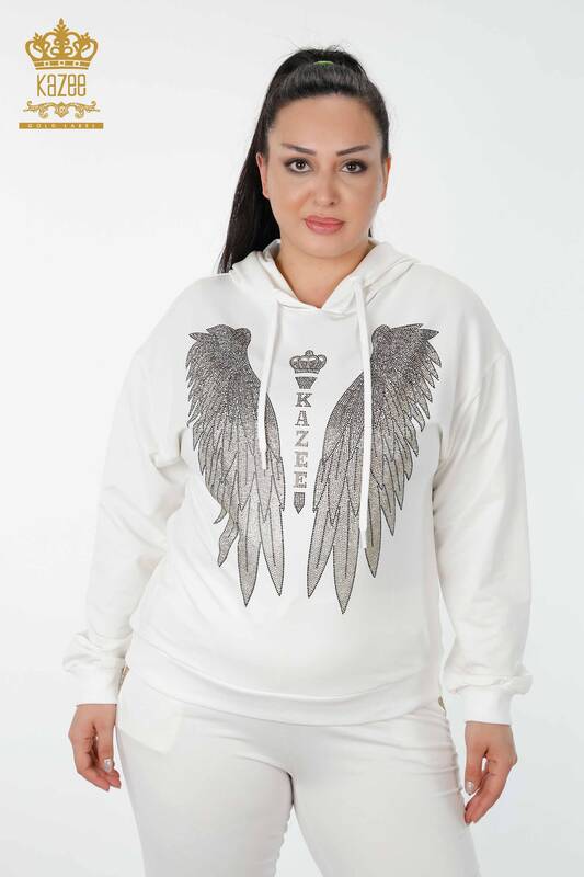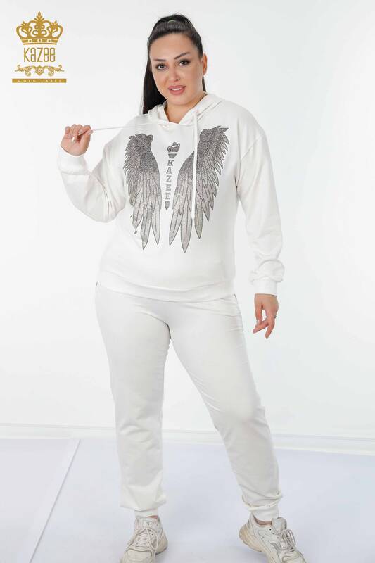Toptan Kadın Eşofman Takımı Melek Kanat Desenli Taş İşlemeli Ekru - 17481 | KAZEE